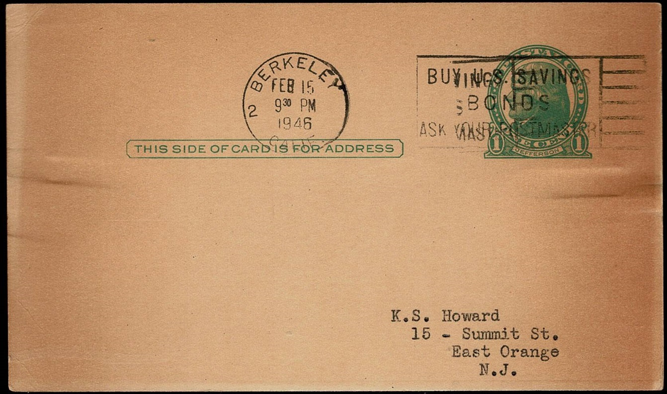 Letter from Edgar Allen discussing the book laid in and post card from Eugene Neuhaus discussing cooked problems.