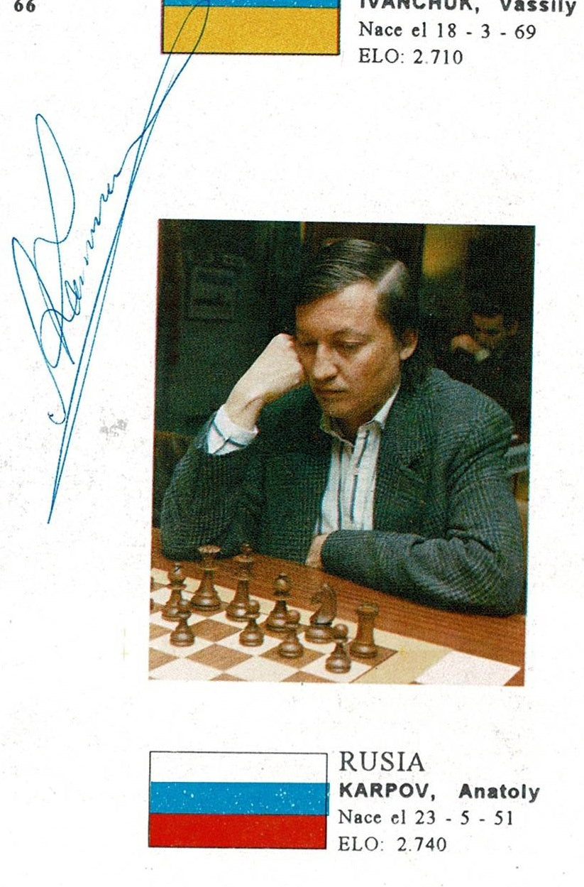 Condition: Signed by Karpov next to his promotional picture. Corners bumped some light edge wear else very good.