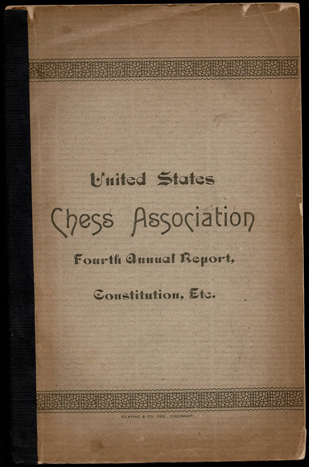 Contains information on the organization, the conference report, and the statutes, as well as a list of members. Pages 10–44 describe the Championship Tournament with a short report and a larger section of the games. Also included is a brief account of the Free-for-All Tournament. J. W. Showalter won the tournament in Lexington in 1891, ahead of W. H. K. Pollock and J. M. Hanham.