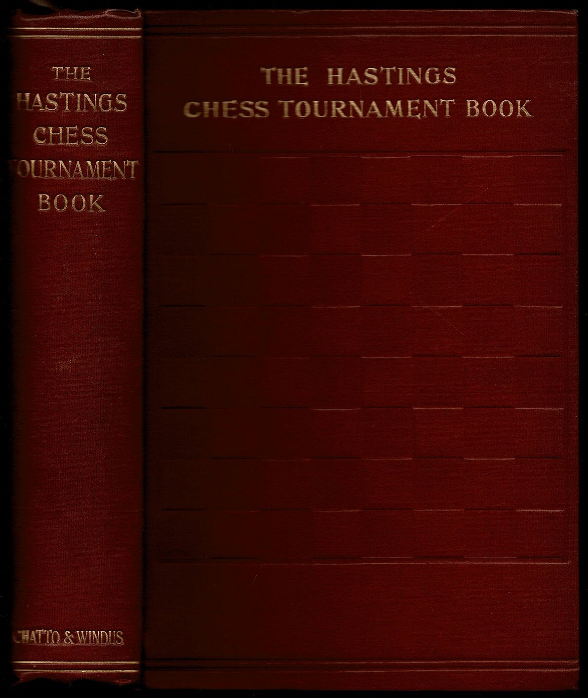 xii+370+[32 ad] pages with frontispiece and 21 additional plates. Small octavo (7 3/4" x 5 1/4") bound in original publisher's red cloth with blind embossing to cover and gilt lettering to spine. Containing the authorized account of the 230 games played Aug.-Sept. 1895 with annotations by Pillsbury, Lasker, Tarrasch, Steinitz, Schiffers, Teichmann, Bardeleben, Blackburne, Gunsberg, Tinsley, Mason, and Albin and biographical sketches of the chess masters. From the library of Lothar Schmid. (Betts: 25-28) First edition.